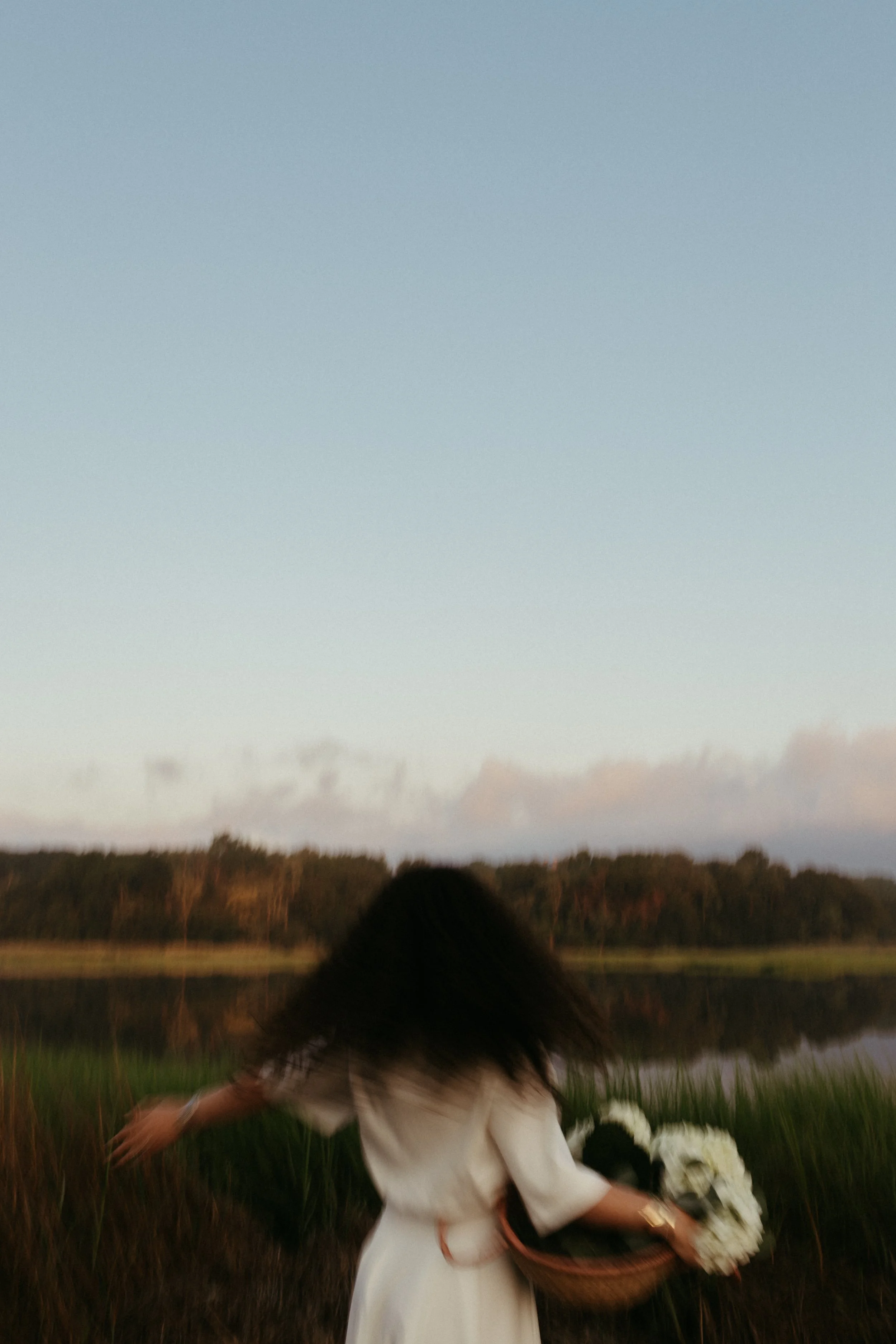 Close-up image of four iridescent glass candle holders on a woven mat, with a door and floor in the background.